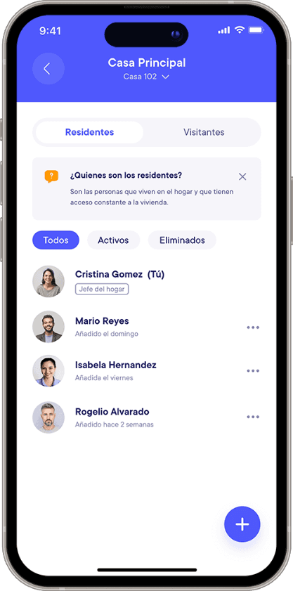 Podrás invitar a tus familiares y amigos a formar parte como residentes, brindándoles un acceso fácil y conveniente.